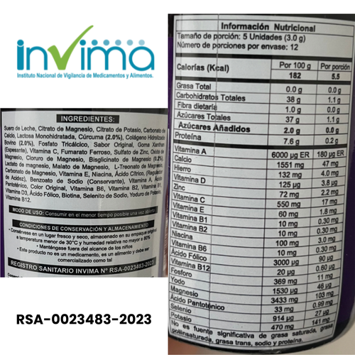 Producto con estándares altos de fabricación y control. Con registro INVIMA certificado RSA-0023483-2023.