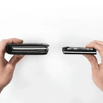 Antes siempre tenia problemas con las billeteras gordas, esta es minimalista y elegante. el sistema rfid da mucha seguridad, ya no me preocupo tanto por fraudes